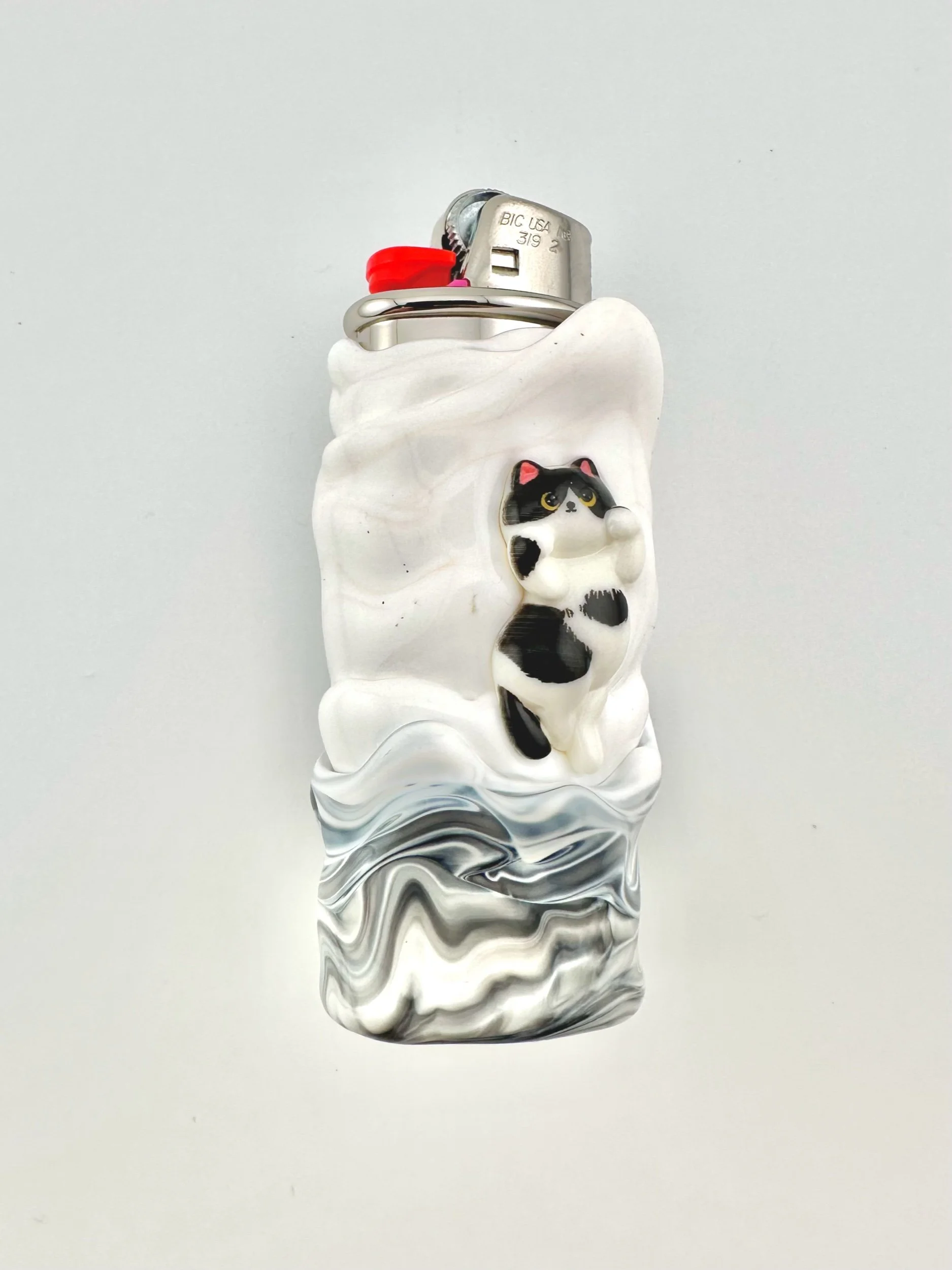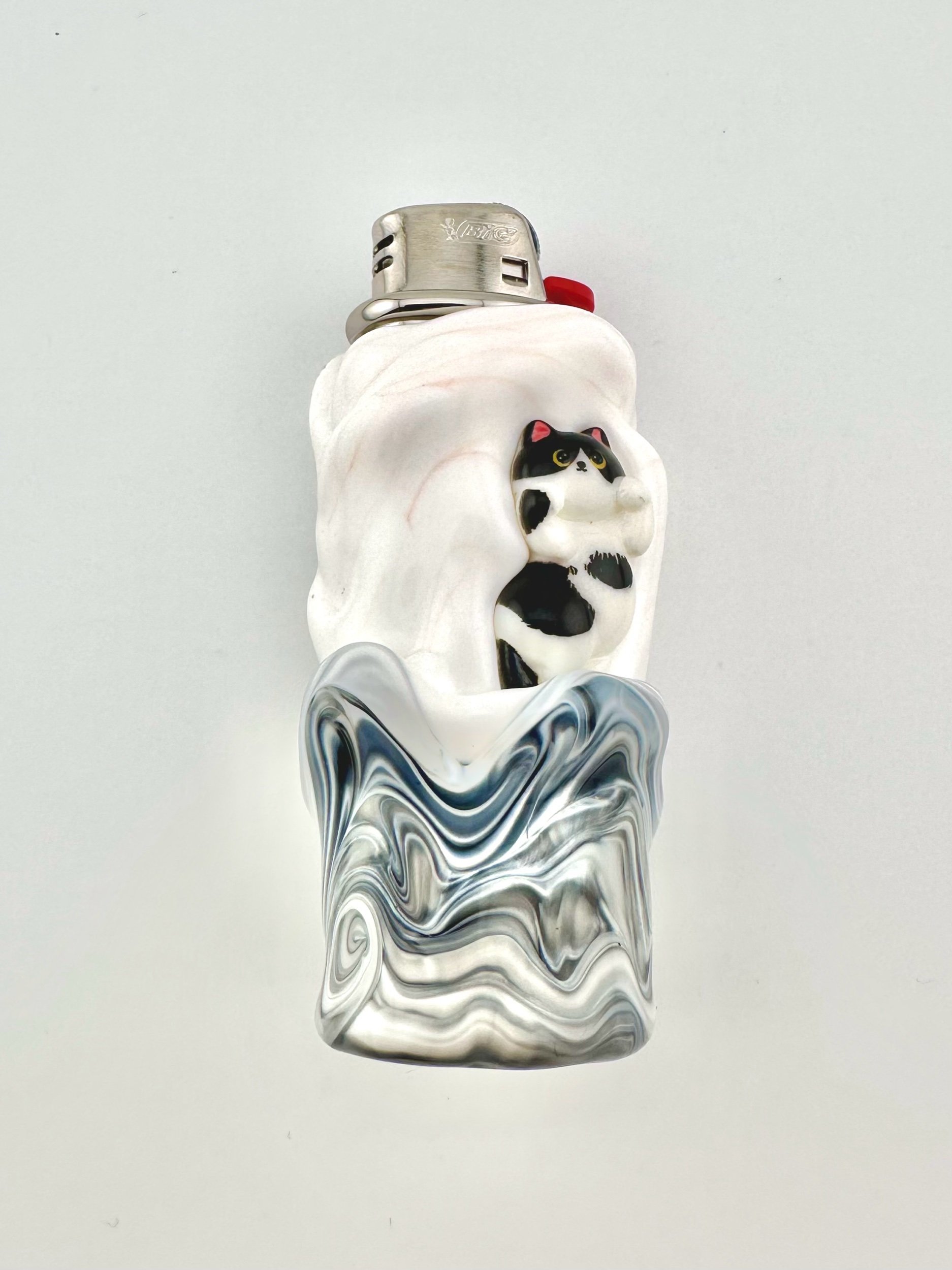 A trippy drippy lighter case for all of your flaming needs. Pigmented hot glue on a removable metal frame - sometimes embellished with charms, pearls, rhinestones, whatever I have laying around in the studio. Prices reflect the cost and labor for each piece. Comes with a Bic lighter.