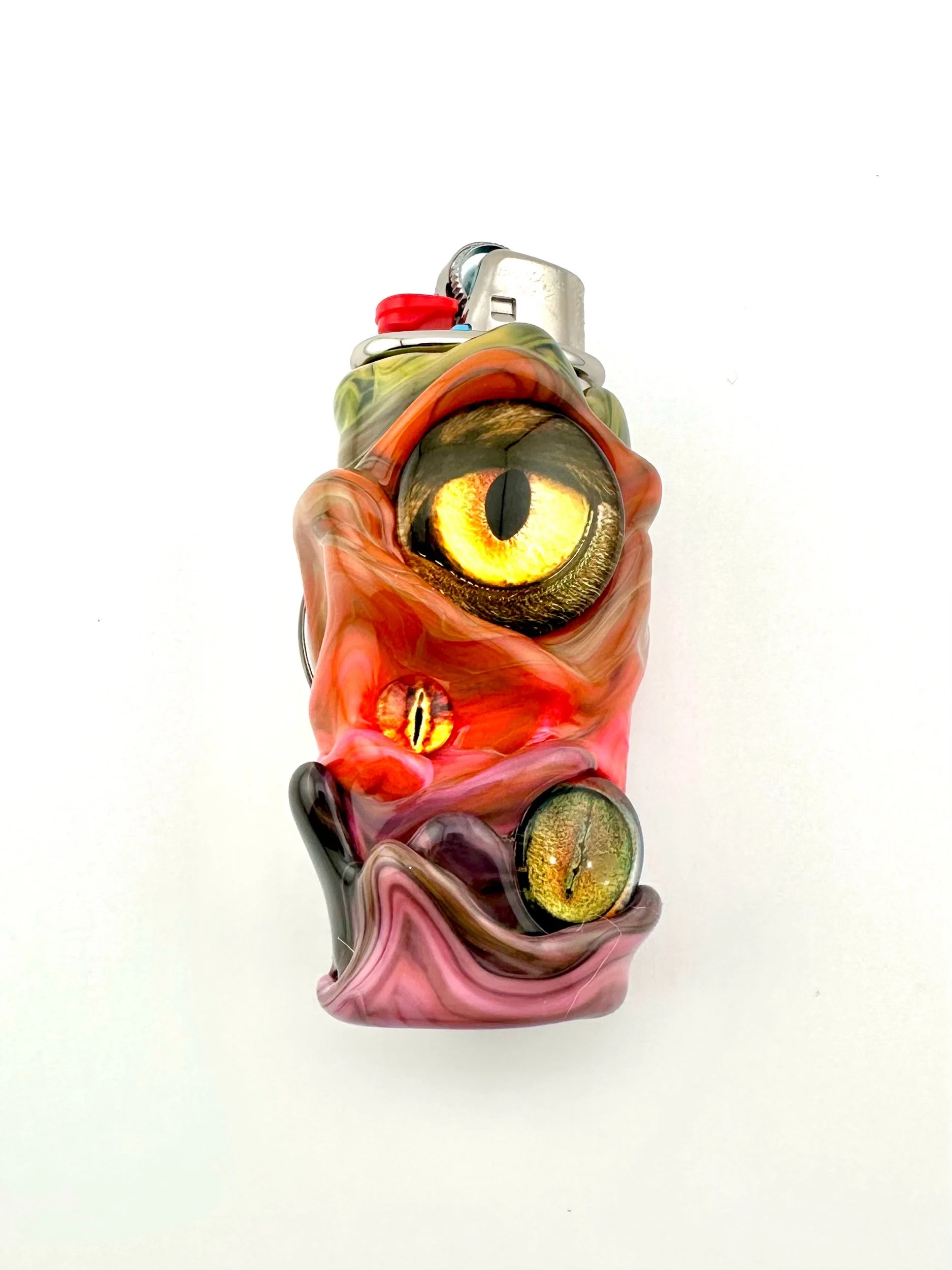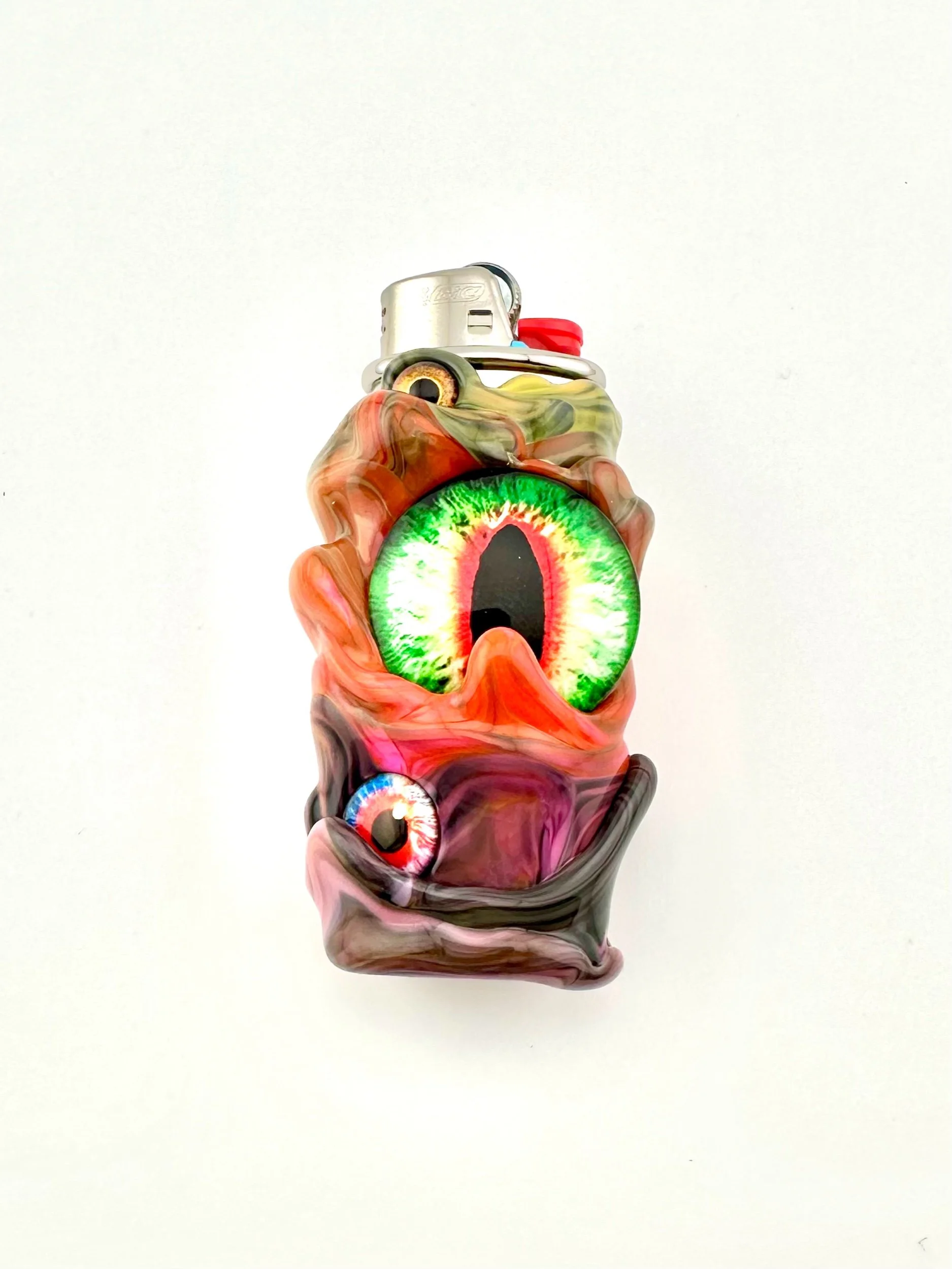 A trippy drippy lighter case for all of your flaming needs. Pigmented hot glue on a removable metal frame - sometimes embellished with charms, pearls, rhinestones, whatever I have laying around in the studio. Prices reflect the cost and labor for each piece. Comes with a Bic lighter.